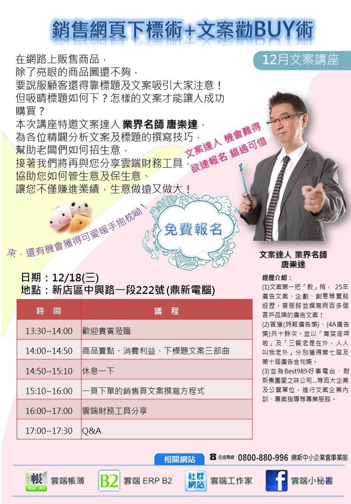 就是非常重要的課程,鼎新電腦於12/18特邀文案達人